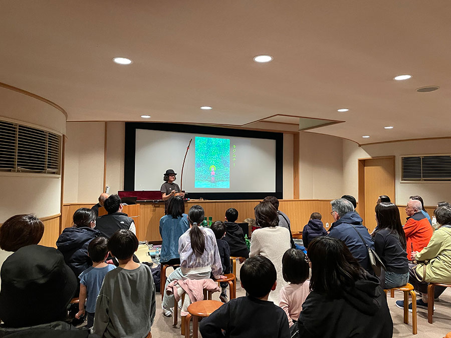 2009年の映像作品「飛騨匠奇伝」の京都・東京公演以来9年ぶりに、スイス人筑前琵琶奏者のシルヴァン・旭西・ギニャールさんとの共演となりました。 原作映像・野村幸弘、作曲・岡田加津子による映像作品(DVD)「飛騨匠奇伝」から場面を抜粋しての、能舞台での公演でした。 そして今回は筑前琵琶本曲の「土蜘蛛」の演目もあり、いずれも未知なる深い異界へ誘われる、新たなる妖怪探訪への道となりました。